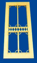 Victorian Screen Door with four panels and gingerbread in the middle of door.