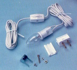 Use this 115 vac lighting set for backlighting any vignette box or miniature room. Locate the 4-watt bulb behind a back wall to create a completely hidden indirect light source. The plug and in-line switch are removable and allow the power cord to be easily pulled through a small feed hole. Overall length 6'. No transformer necessary.![]()