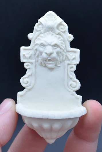 Bring pride and charm to your dollhouse, fairy garden, or miniature project with this lion-head fountain. This piece measures 1-5/8" wide x 3 x 1-5/8". Hand-poured and pulled in our shop using resin and molds.