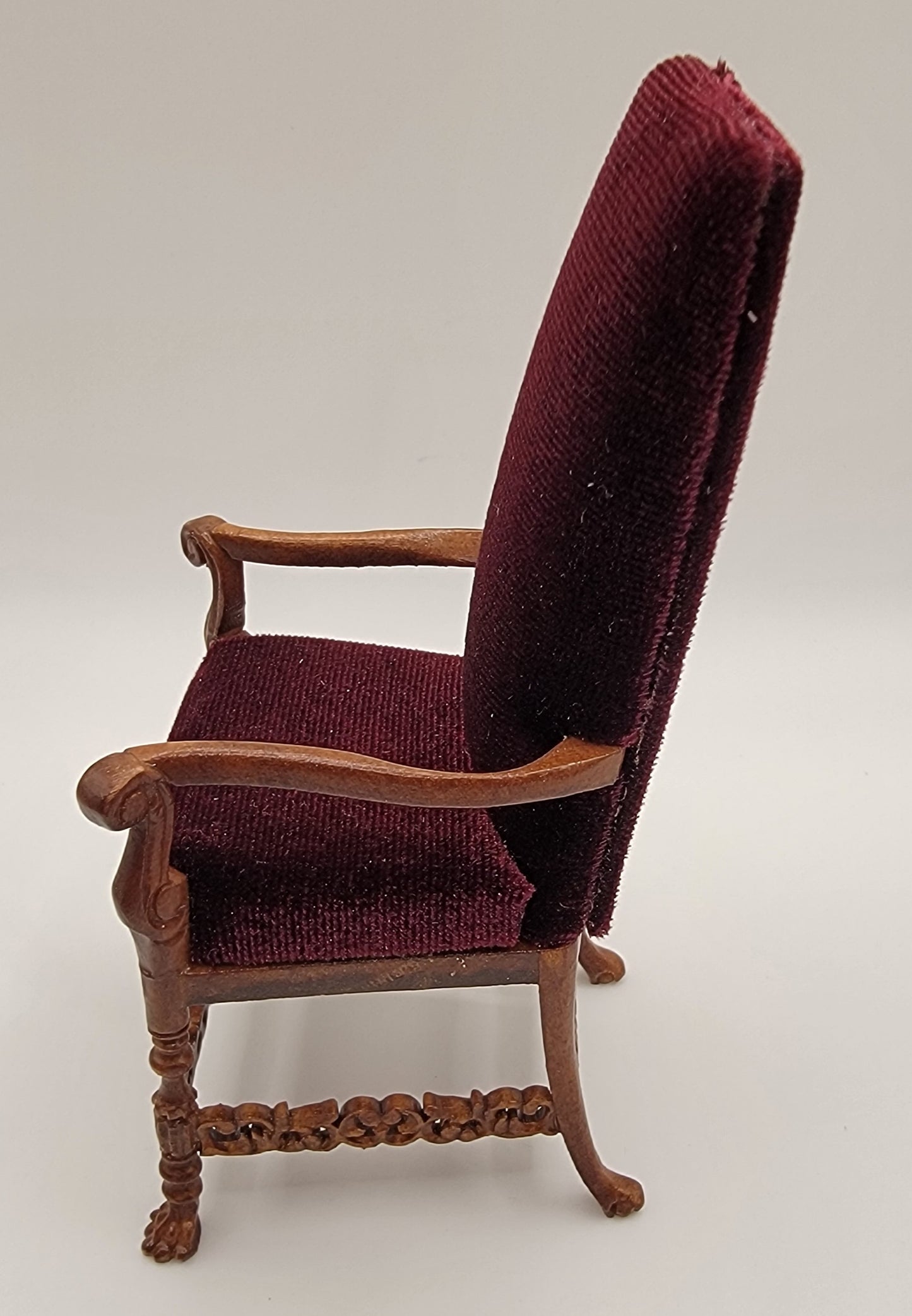 This Wexburg Saxe Arm Chair is made by Bespaq and comes in a Walnut finish with a Dark Red Velvet fabric.