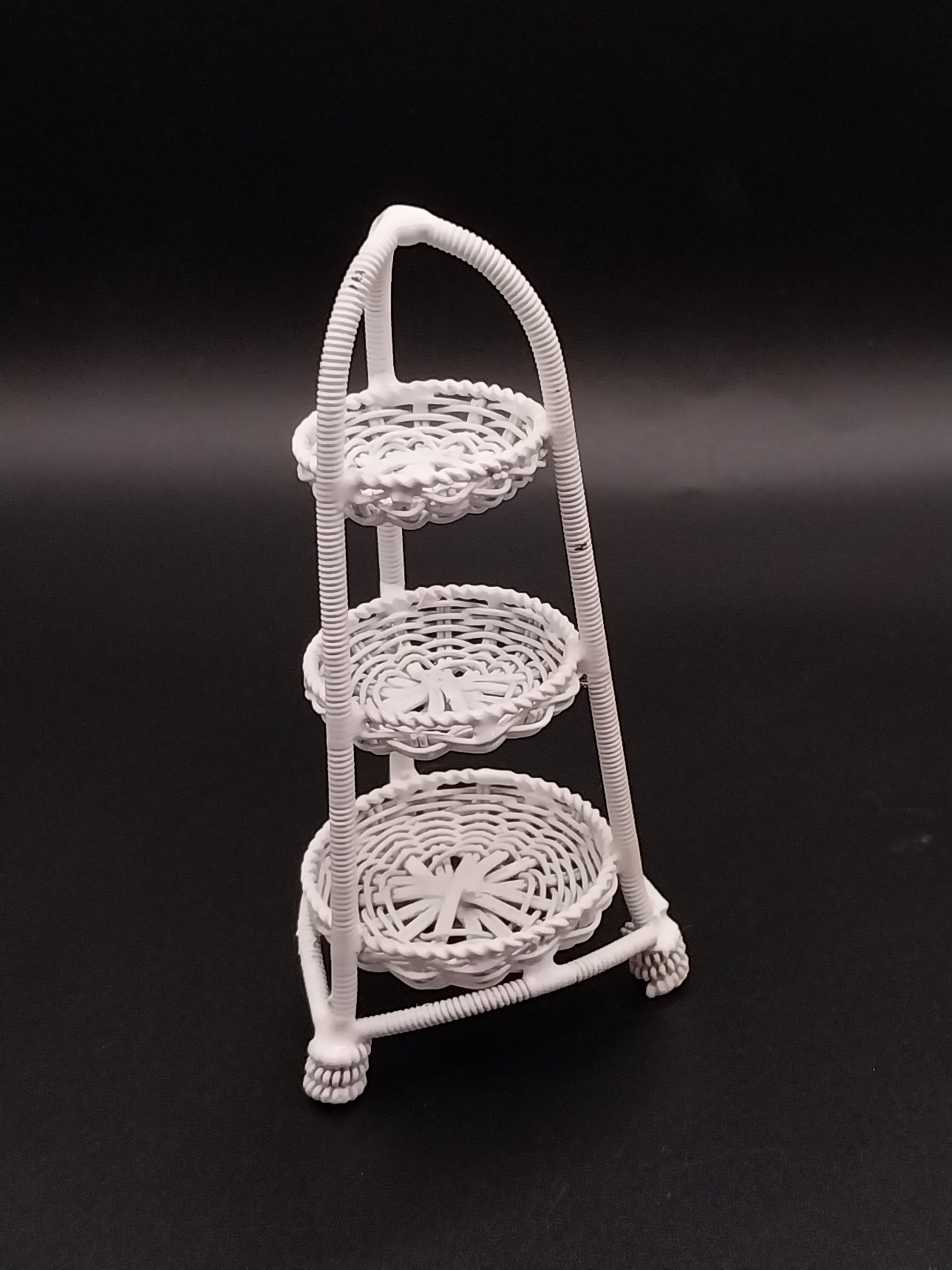 White Wire Wicker Flora's Muffin Stand, Has 3 basket shelves.
