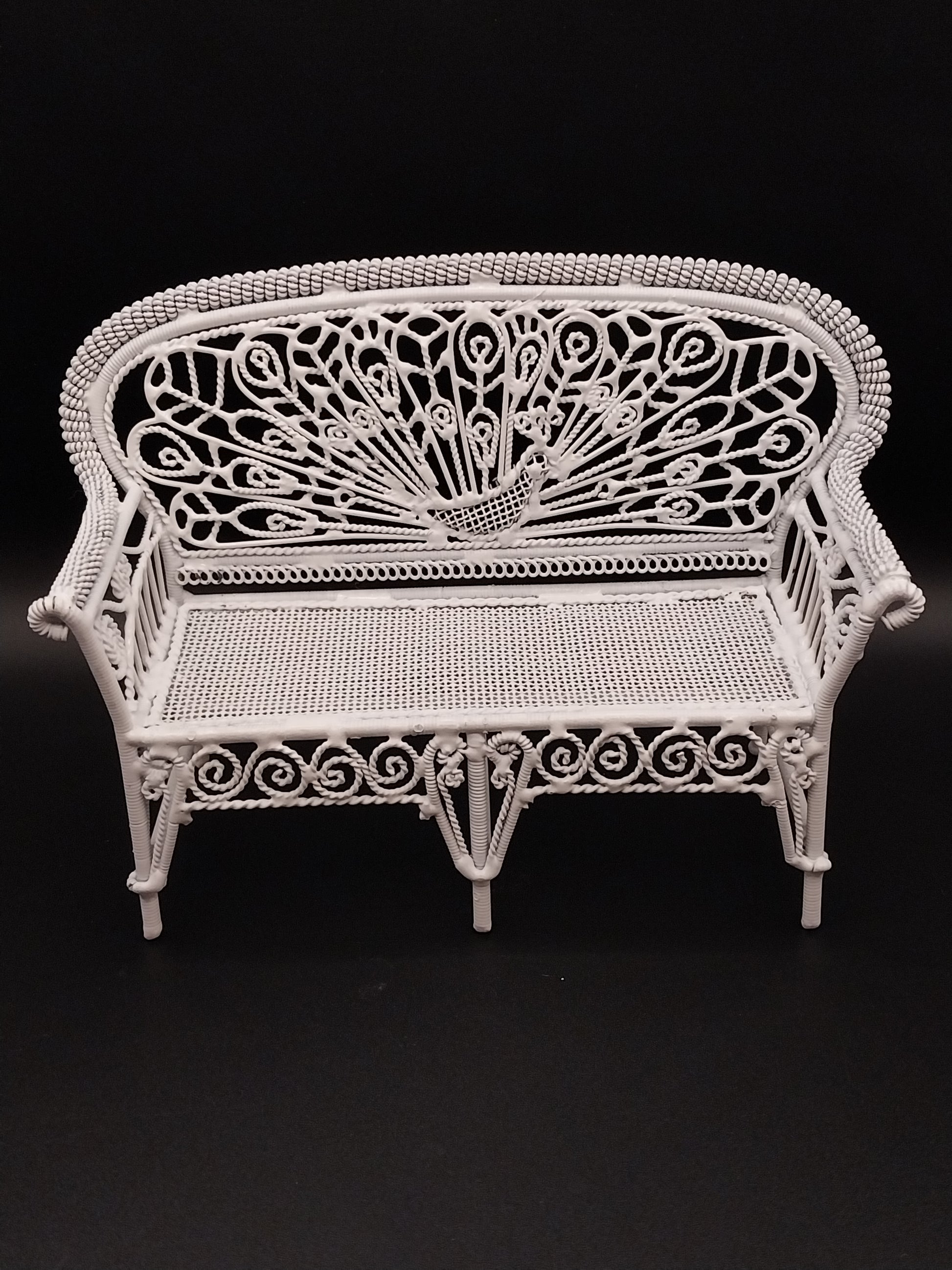 White Wire Wicker Settee with Rolled Arms